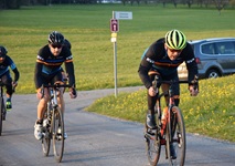 Schneider und 8 Kollegen zum 4. Klubrennen über 12 Runden à 2,3 km. Der zuletzt gestartete Nils Stadler legte sich mächtig in Zeug und rollte das Feld schnell von hinten auf. Nach dem Zusammenschluss bildete sich rasche eine Spitzengruppe mit Nils Stadler, Armand Posthumus und Matthias Oswald.